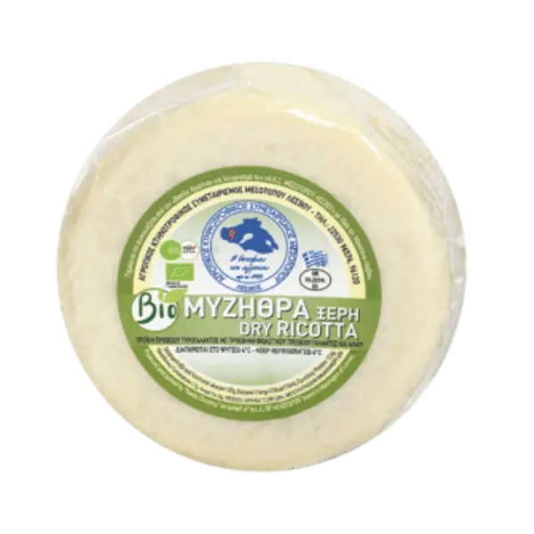 Βιολογική μυζήθρα Ξηρή Μεσοτόπου Η βιολογική Μυζήθρα του Αγροκτηνοτροφικού Συνεταιρισμού Μεσοτόπου είναι ένα τυρί με πλούσια ιστορία και μοναδικό άρωμα από τη λεσβιακή γη. Παράγεται με τον παραδοσιακό τρόπο από αιγοπρόβειο γάλα υψηλής ποιότητας, προσφέροντας αυθεντική γεύση και χαρακτηριστική υφή που θυμίζει το παρελθόν της νησιωτικής τυροκομίας. Πρόκειται για ένα πικάντικο, αρωματικό και έντονα γευστικό τυρί, που ωριμάζει φυσικά και αποκτά τη χαρακτηριστική του ξηρότητα. Ιδανική για τρίψιμο πάνω σε ζυμαρικά, πίτες ή σαλάτες, η Μυζήθρα απογειώνει κάθε παραδοσιακό ή σύγχρονο πιάτο με τη χαρακτηριστική νοστιμιά της. Κάθε κεφαλάκι είναι αποτέλεσμα συλλογικής δουλειάς, εμπειρίας και αγάπης των παραγωγών του Μεσοτόπου, που συνεχίζουν με σεβασμό την τυροκομική κληρονομιά της Λέσβου. Παράγεται και συσκευάζεται στο Μεσότοπο Λέσβου Προϊόν χωρίς συντηρητικά - 100% ελληνικό
