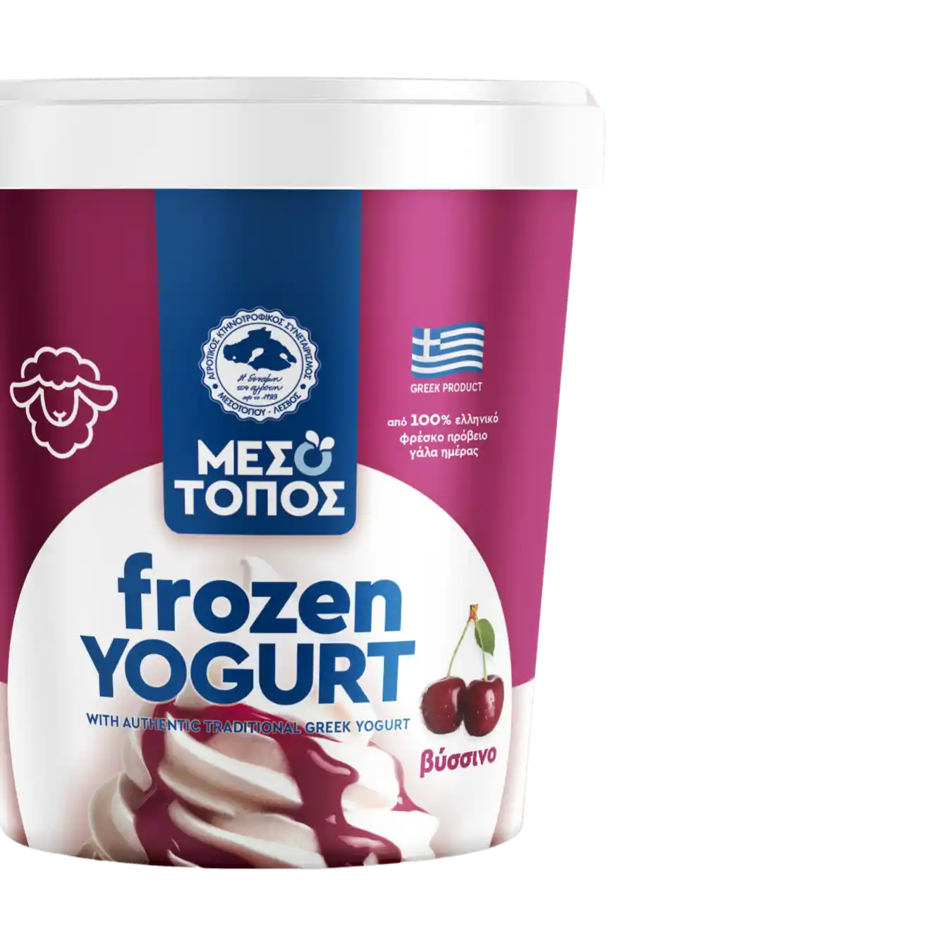 FROZEN YOGURT ΜΕ ΠΑΡΑΔΟΣΙΑΚΟ ΠΡΟΒΕΙΟ ΓΙΑΟΥΡΤΙ & ΒΥΣΣΙΝΑ Το frozen yogurt με παραδοσιακό πρόβειο γιαούρτι του Συνεταιρισμού Μεσοτόπου και βύσσινα συνδυάζει τη δροσερή υφή του παγωμένου γιαουρτιού με τη φυσική, γλυκόξινη γεύση του φρούτου. Η πλούσια σύσταση του πρόβειου γιαουρτιού προσφέρει ισορροπημένη οξύτητα και γεμάτη γεύση, ενώ τα βύσσινα χαρίζουν έντονο άρωμα και φρεσκάδα. Μια ελαφριά και απολαυστική επιλογή για κάθε στιγμή της ημέρας.