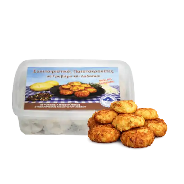 ΠΑΤΑΤΟΚΡΟΚΕΤΕΣ Οι πατατοκροκέτες του Συνεταιρισμού Μεσοτόπου παρασκευάζονται με εκλεκτές πατάτες και προσεκτικά επιλεγμένα υλικά, προσφέροντας τραγανή υφή εξωτερικά και απαλή, γεμάτη γεύση στο εσωτερικό. Ένα αγαπημένο συνοδευτικό ή snack, ιδανικό για κάθε στιγμή της ημέρας, που ξεχωρίζει για την ισορροπημένη γεύση και την ποιότητα των πρώτων υλών.